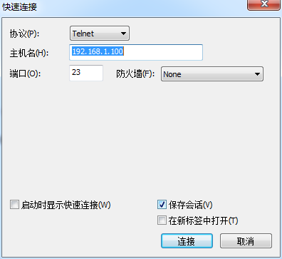 securecrt快速连接选择Telnet协议、主机名、端口: