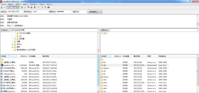 便可以用filezilla输入主机用户名密码端口(默认21),开发板window之间互传文件了