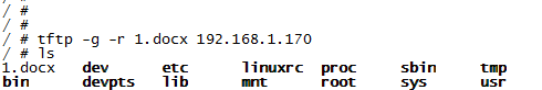 开发板执行tftp -g -r 1.docx 192.168.1.170 把window Local File下的1.docx文件