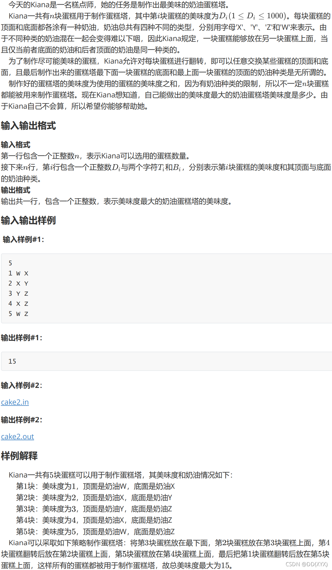 n≤20 的状压应该都会吧,状态记录已经选了的蛋糕集合,以及蛋糕序列的尾部奶油,然后枚举蛋糕转移。