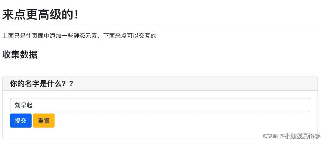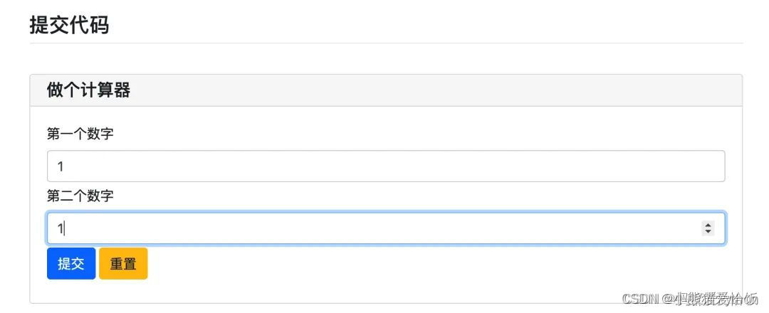其实上面说的存储数据也好,执行代码也好,本质上就是给这个提交按钮添加一个功能,我们来实现最简单的计算器。也就是点击提交,计算两数相加