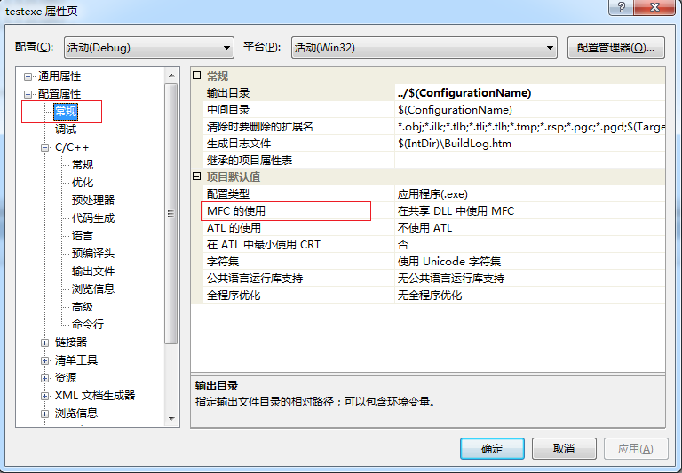 如果出错#error : Please use the /MD switch for _AFXDLL builds ,请先配置常规。