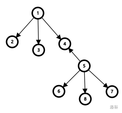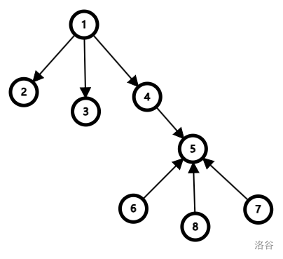 如图,只要把以顶点 \(4\) 为根节点的子树上的边的方向全部取反即可。