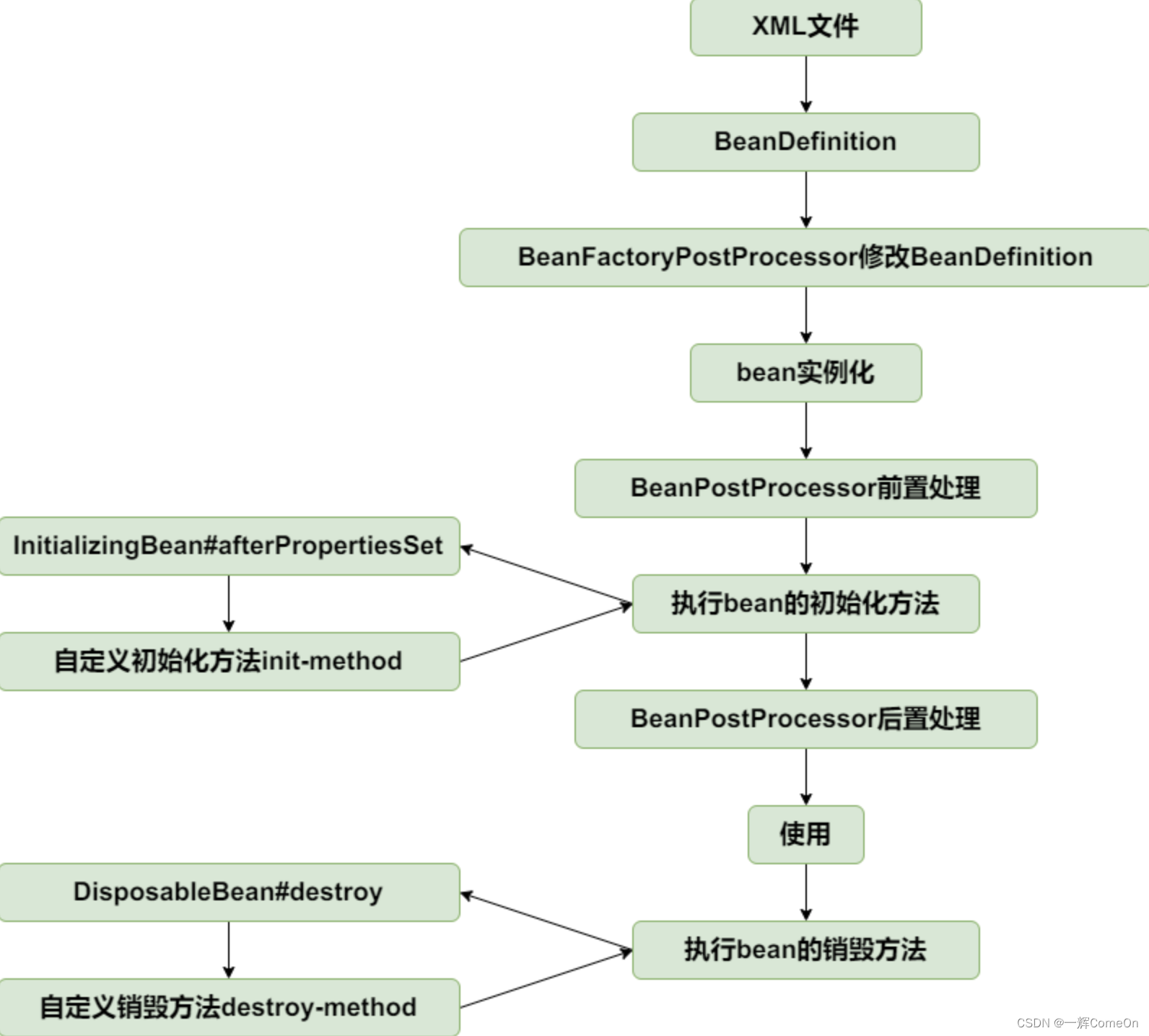 InitializingBean接口:通过实现该接口,可以在bean的初始化阶段执行afterPropertiesSet()方法,用于初始化操作。DisposableBean接口:通过实现该接口,可以在bean销毁之前执行destroy()方法,用于资源清理或关闭操作。