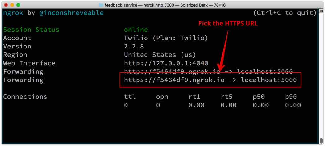 `ngrok http 5000`
