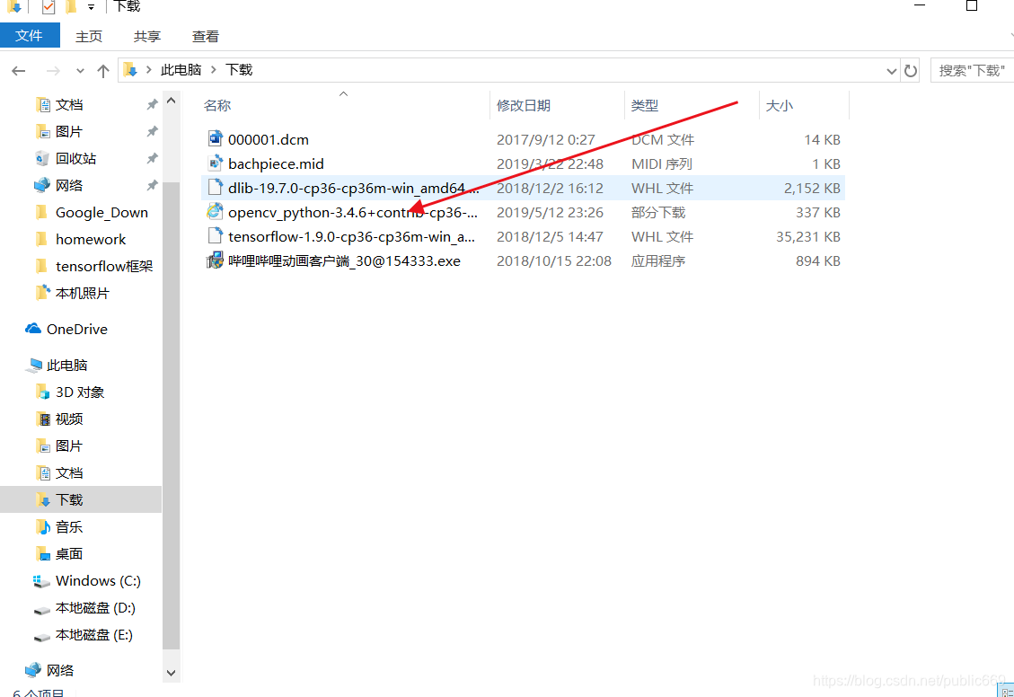 在命令行中输入pip install +文件的路径,譬如我的路径为:C:\Users\胡子旋\Downloads\opencv_python-3.4.6+contrib-cp36-cp36m-win_amd64.whl.oi3bkna.partial