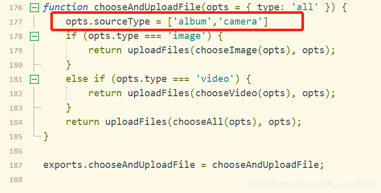 从组件源码里找到choose-and-upload-file.js文件,查找chooseAndUploadFile方法,在方法里添加下面代码,保存即可解决。