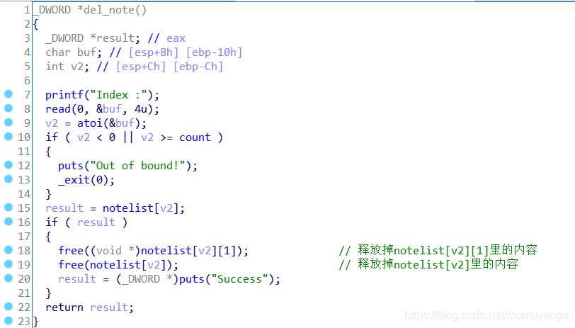 delete,它只释放掉了堆块里的内容,但是没有将指针置0,存在uaf漏洞