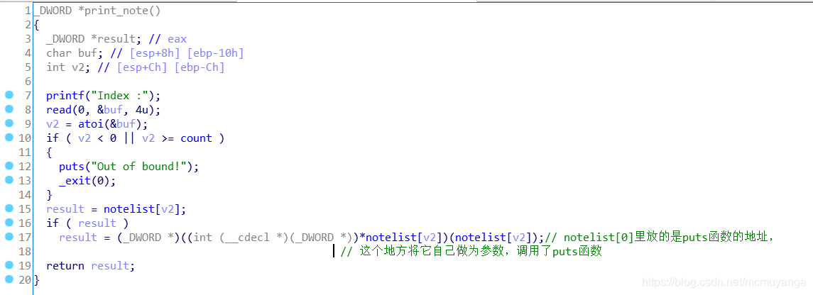 pwnable_hacknote 附件 步骤: 例行检查,32位程序,开启了nx和canary保护 本地试运行看一下大概的情况,熟悉的堆的菜单 32位ida载入 add() gdb看一下堆块的布局更方 ...