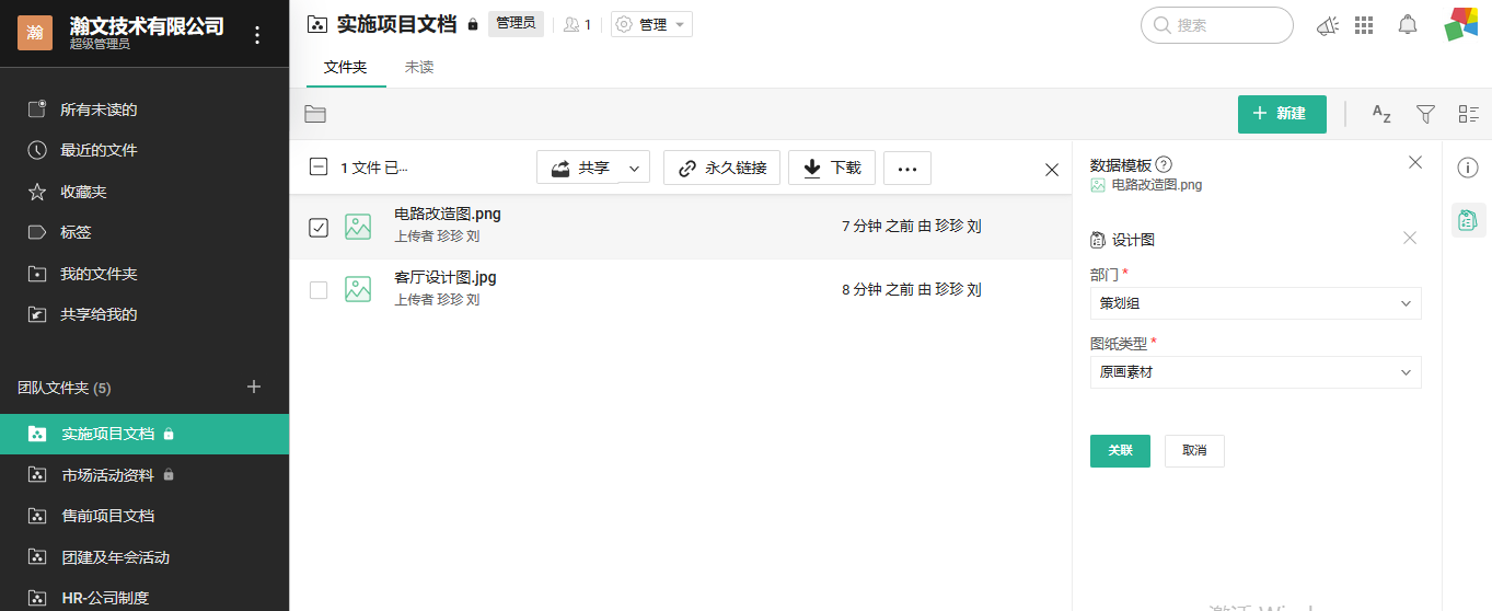 - 团队文件夹里具有“编辑”权限的成员才可以做关联操作,共享给你的文件也行。