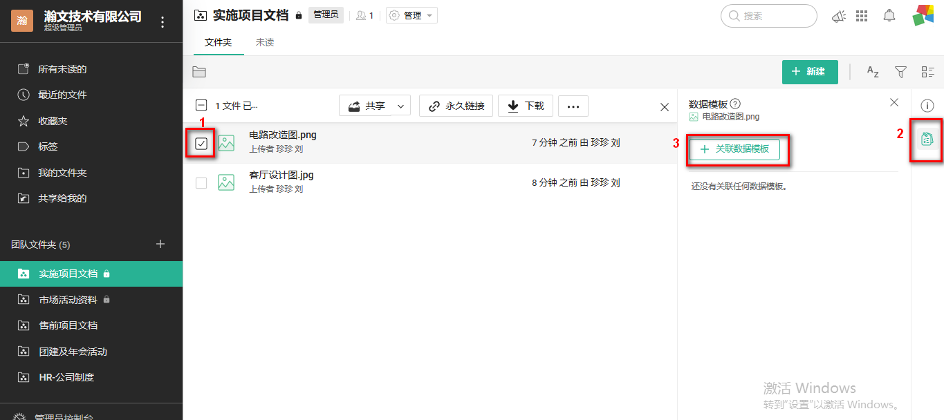 - “我的文件夹”里的文件和文件夹不能关联到数据模板