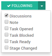 你可以决定关注一个项目。在这个情形下, 你会被通知各种项目的变更 :比如任务从一个阶段到另一个, 交流的内容, 等等。你会在inbox里收到所有的信息。这个功能对于想要随时看到全局的项目经理是很不错的。
