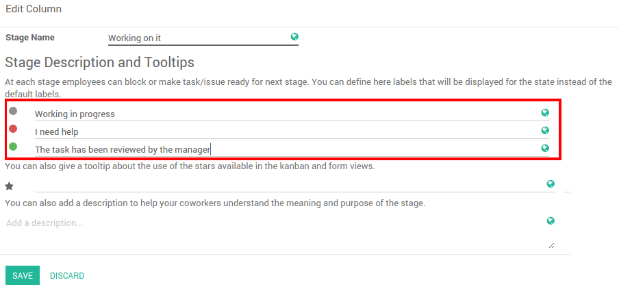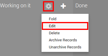 在项目的不同阶段,你可以定义不同的状态含义,在看板视图,点击阶段最上方的齿轮状图标,然后编辑: