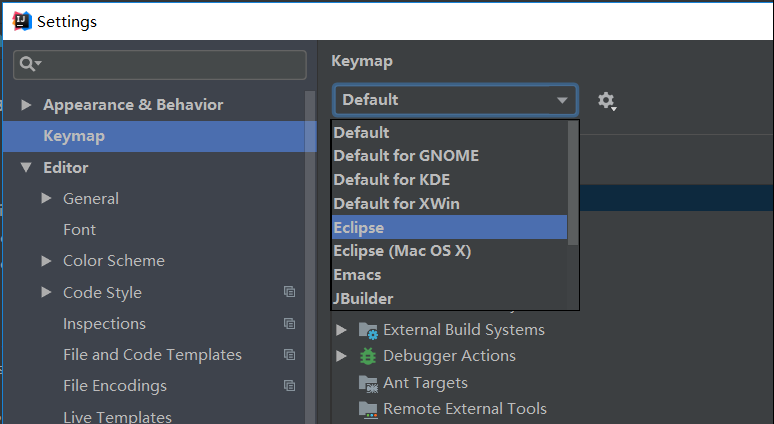 答:这边得写出两种态度了。一种是保留原来eclipse快捷键的方式(时间成本小),在设置中选用沿用eclipse的快捷设置。 Ctl + Alt + S 快捷呼出设置 -> keymap ->选择eclipse 完成啦!!