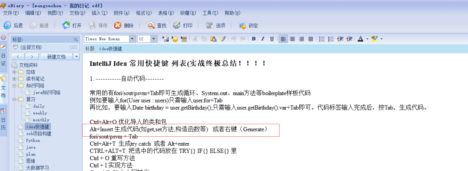 2、找一个最全的,放在我的日记本中,时不时看一遍,已经掌握的,就把它删掉,最终理想状态下,你就能全部掌握。