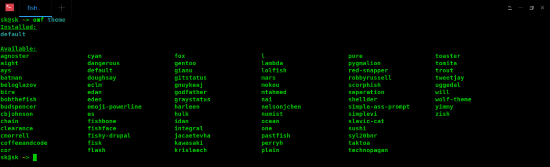 如上图所示,在安装新主题后,Fish shell 的提示立即发生了变化。