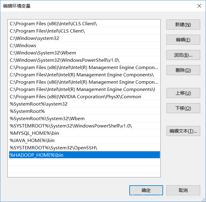我的电脑——>属性——>高级系统设置——>环境变量——>系统变量——>编辑Path,增加 %HADOOP_HOME%\bin ——>新建一个变量名为 HADOOP_HOME,变量值为 hadoop安装路径的系统变量——>确定操作——>完成