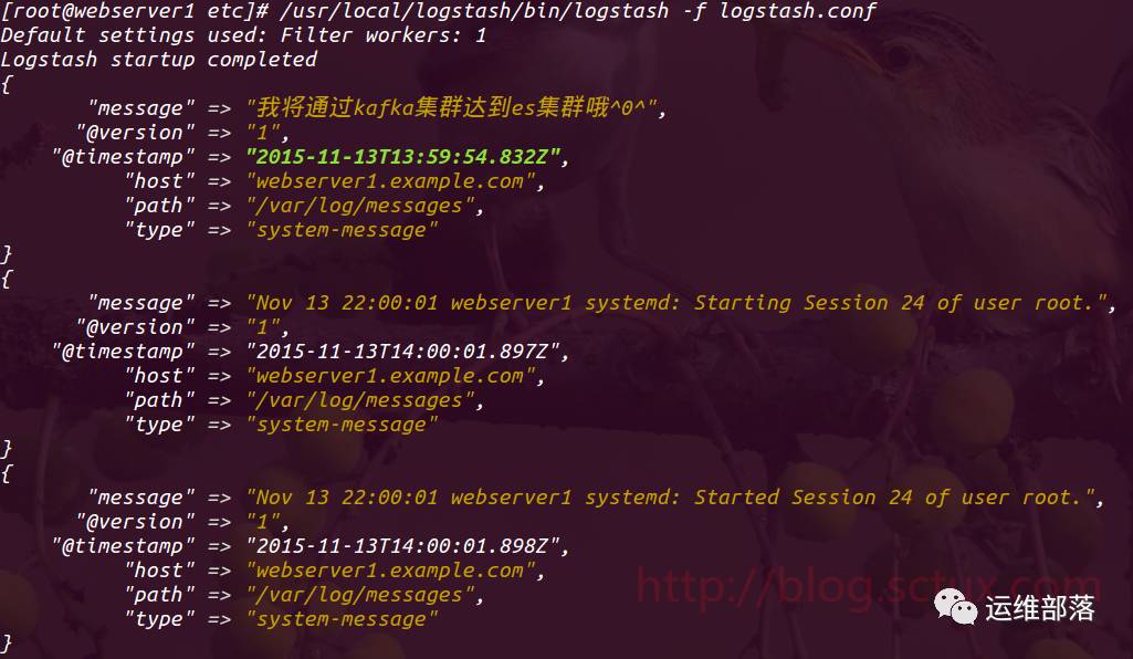 [root@webserver1 etc]# /usr/local/logstash/bin/logstash -f logstash.conf