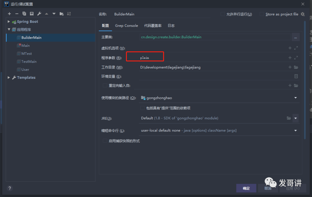 在 main 的 启动配置中 ,在程序参数中 填入自己需要的值