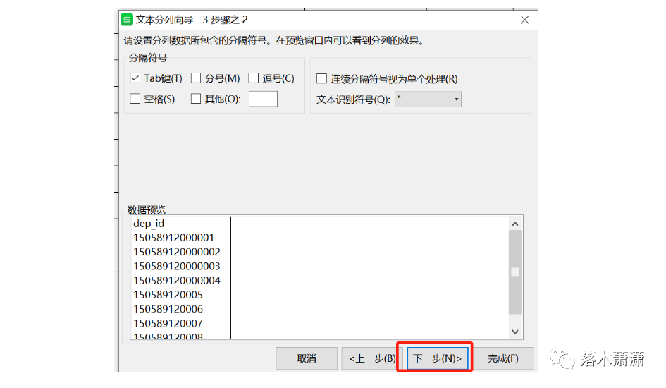 - 第二步:选择【分隔符号】——>点击【下一步】