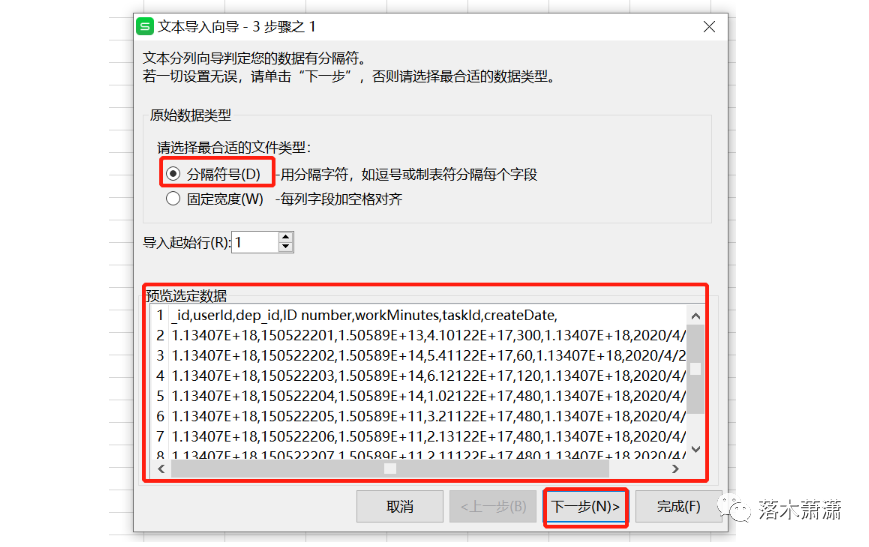 - 第五步:选择【逗号】——>点击下一步(因为CSV文件数据基本上都是以逗号分隔,点击完逗号可以看数据预览是否分列成功)