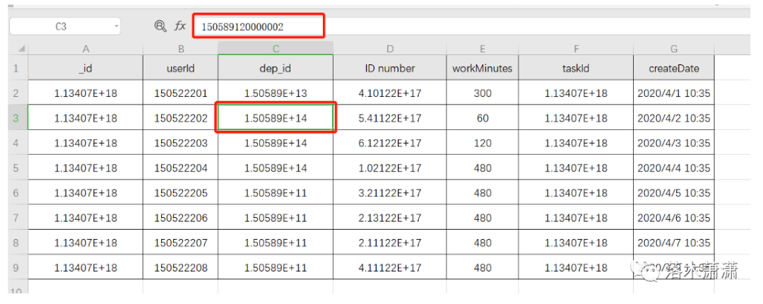 如果导出的数据文件后缀为.CSV,一般数值类型的数据超过12位后,单元格的数据就用科学计数法来表示了。