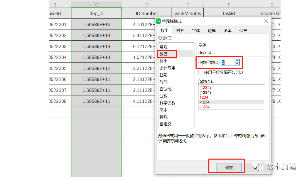 - 第一步:选中要转换的列——>右键——>点击【设置单元格格式】——>选择【数值】,小数位数选择0——>点击【确定】