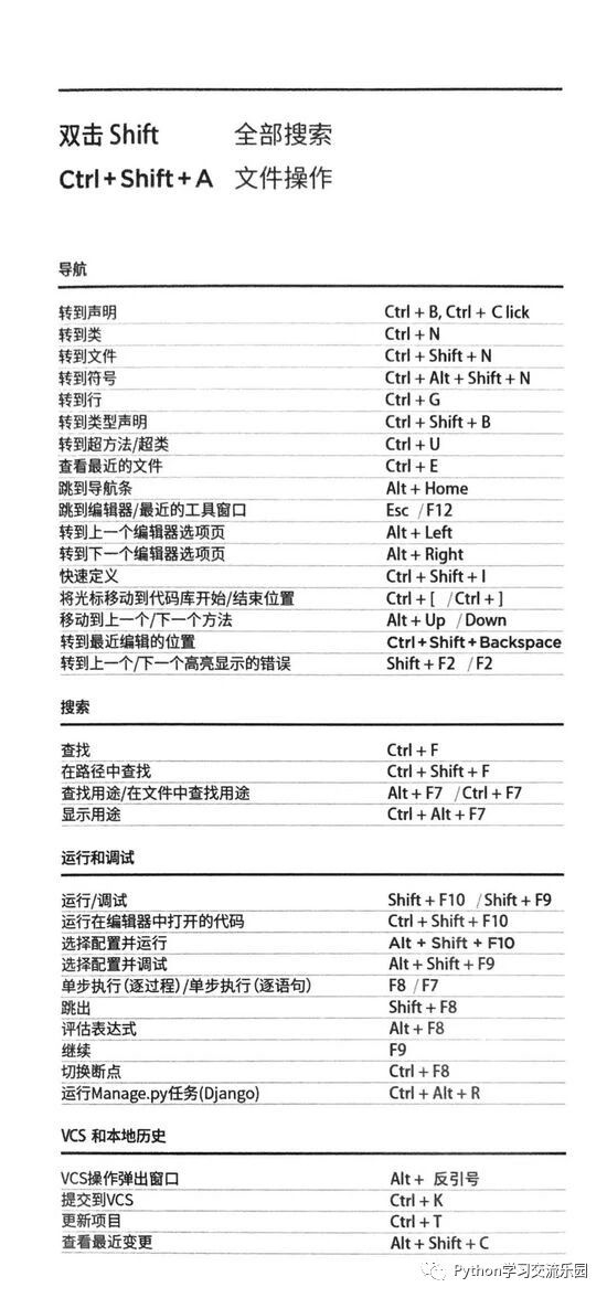 pycharm常用快捷键 1.编辑(Editing) Ctrl + Space 基本的代码完成(类.方法.属性)Ctrl + Alt + Space 快速导入任意类Ctrl + Shift + ...