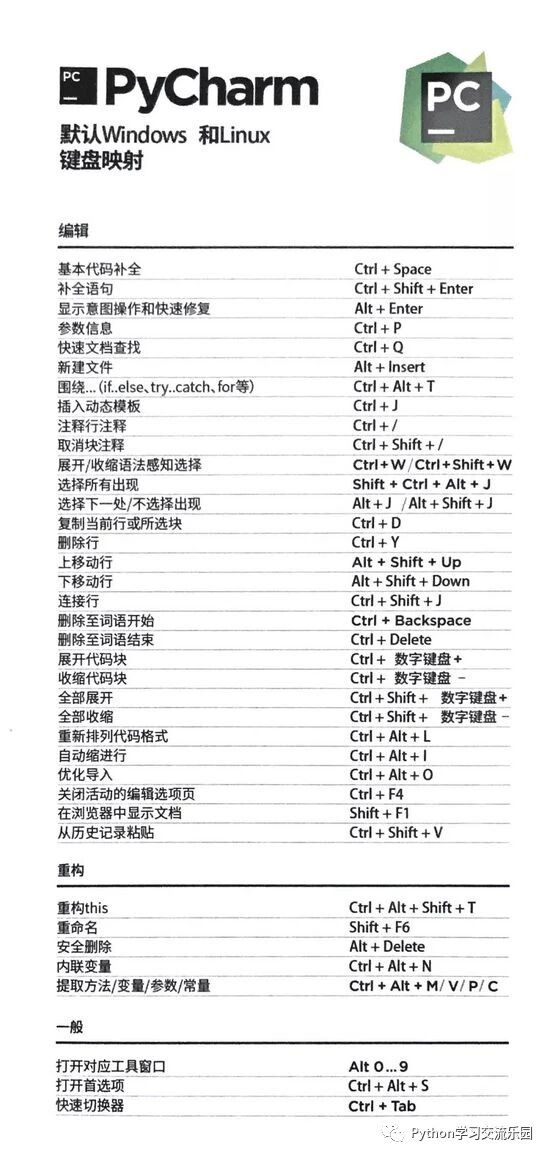 工欲善其事必先利其器,Python开发利器Pycharm常用快捷键以及配置如下,相信有了这些快捷键,你的开发会事半功倍 一 常用快捷键 编辑类: Ctrl + D 复制选定的区 ...
