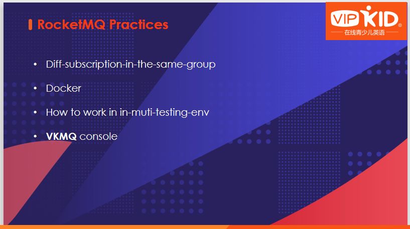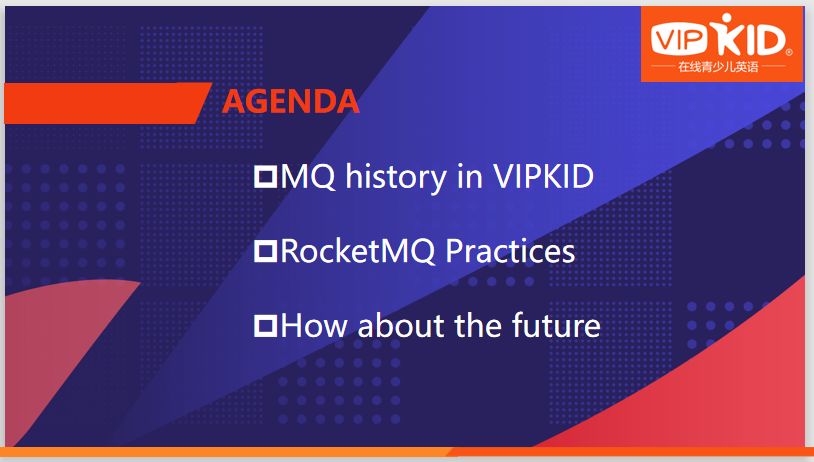 本文主要从三方面展开。首先介绍VIPKID使用MQ的历史,即如何演化到现在的RocketMQ + Kafka。其次,为RocketMQ在VIPKID的实践,主要介绍如何解决在使用RocketMQ过程中出现的相关问题。最后,提到VIPKID的MQ服务关于以后可能会如何变化和发展。