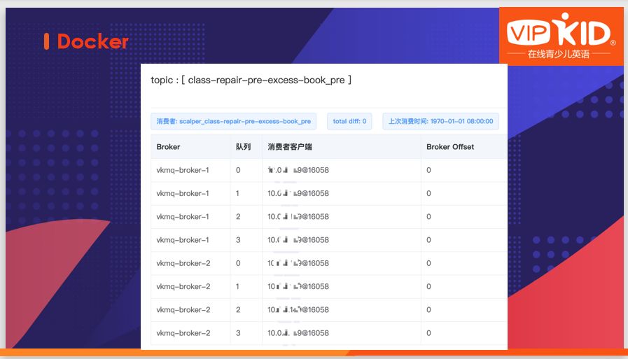 第二个是Docker,因为多环境情况下,在测试环节走的是K8S,它会启动Docker容器,在Docker里会面临一个问题,消费者客户端在起写时,会将自己的订阅信息上报给Broker,告诉它订阅了哪些topic,以及消费者客户端ID是多少,以此来表明身份。当在取客户端ID时,取了一个本地IP,但是在Docker里面取出来的本地大部分是相同的。