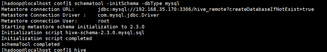 7、初始化 hive 使用命令: schematool -initSchema -dbType mysql