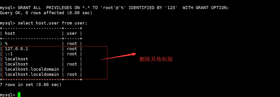 8、修改mysql权限控制 GRANT ALL PRIVILEGES ON *.* TO 'root'@'%' IDENTIFIED BY '123' WITH GRANT OPTION;