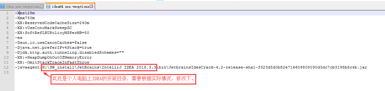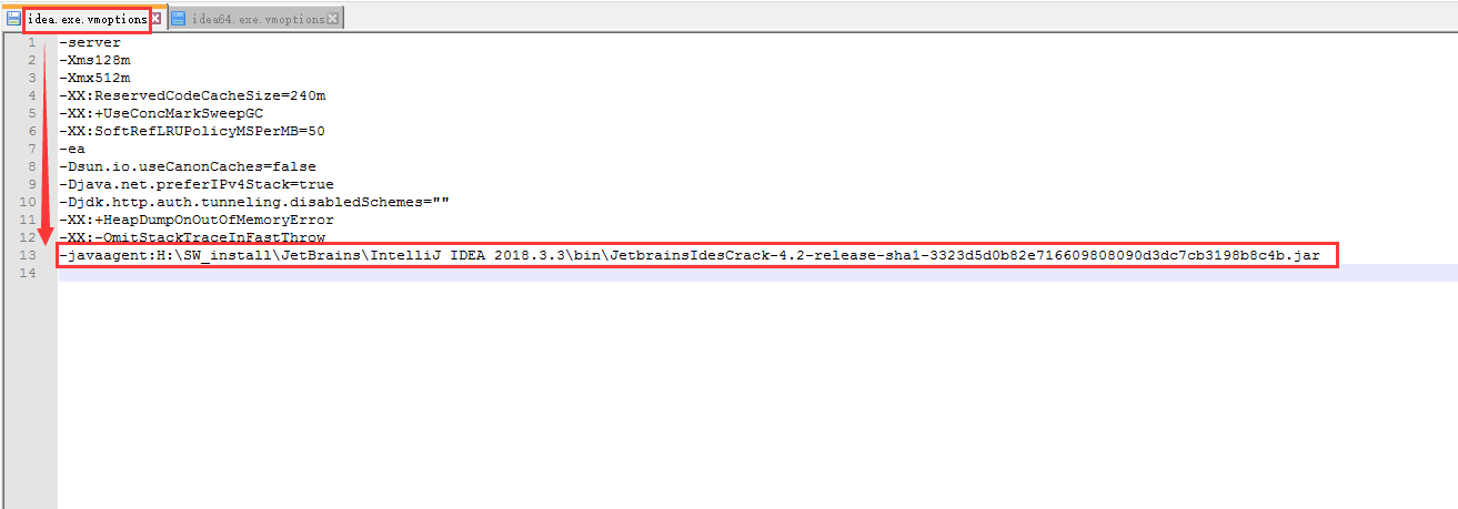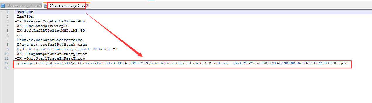 -javaagent:H:\SW_install\JetBrains\IntelliJ IDEA 2018.3.3\bin\JetbrainsIdesCrack-4.2-release-sha1-3323d5d0b82e716609808090d3dc7cb3198b8c4b.jar