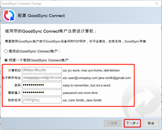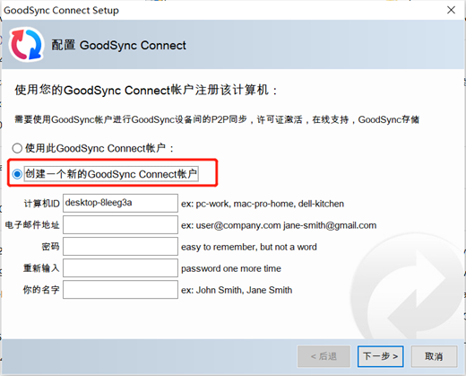 第三步:点击“创建一个新的GoodSync Connect账户”输入相关的信息