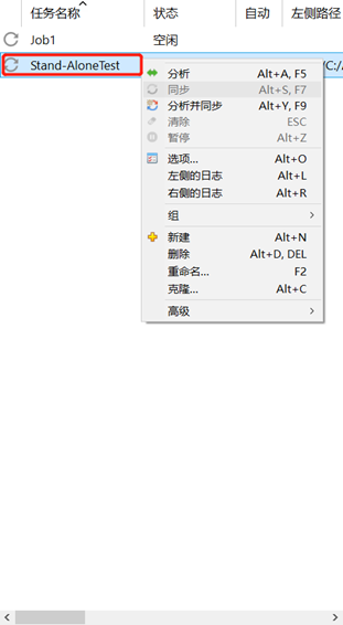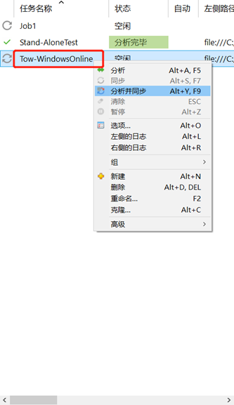 第五步:在左侧任务名称中找到我们刚刚创建的任务,右键,选择“分析并同步”