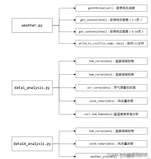 天气预报我们每天都会关注,我们可以根据未来的天气增减衣物、安排出行,每天的气温、风速风向、相对湿度、空气质量等成为关注的焦点。本次使用python中requests和BeautifulSoup库对中国天气网当天和未来14天的数据进行爬取,保存为csv文件,之后用matplotlib、numpy、pandas对数据进行可视化处理和分析,得到温湿度度变化曲线、空气质量图、风向雷达图等结果,为获得未来天气信息提供了有效方法。