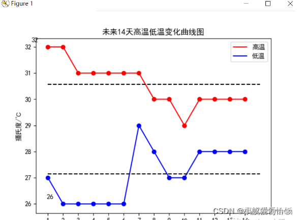 tem_high_ave = sum(tem_high)/14 # 求平均高温