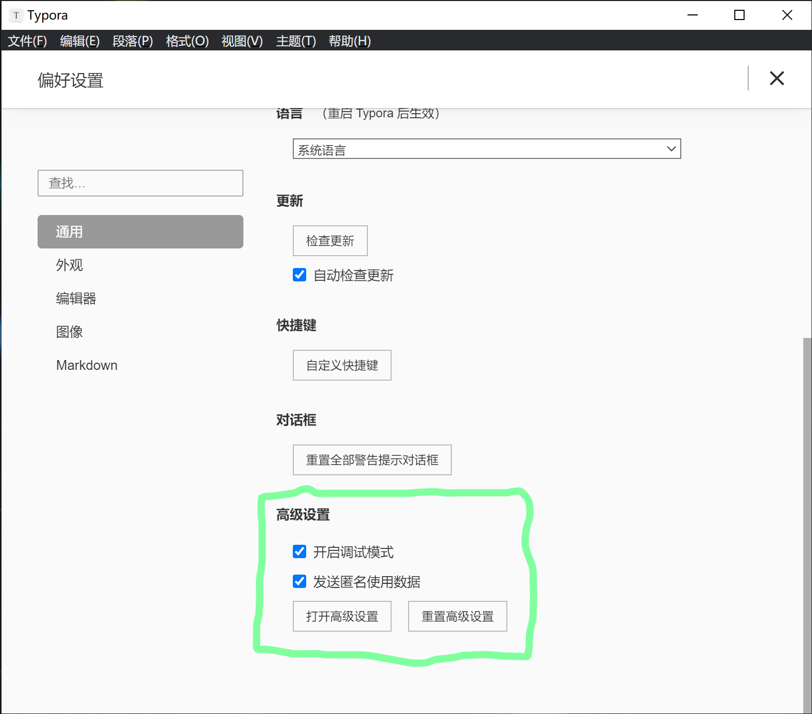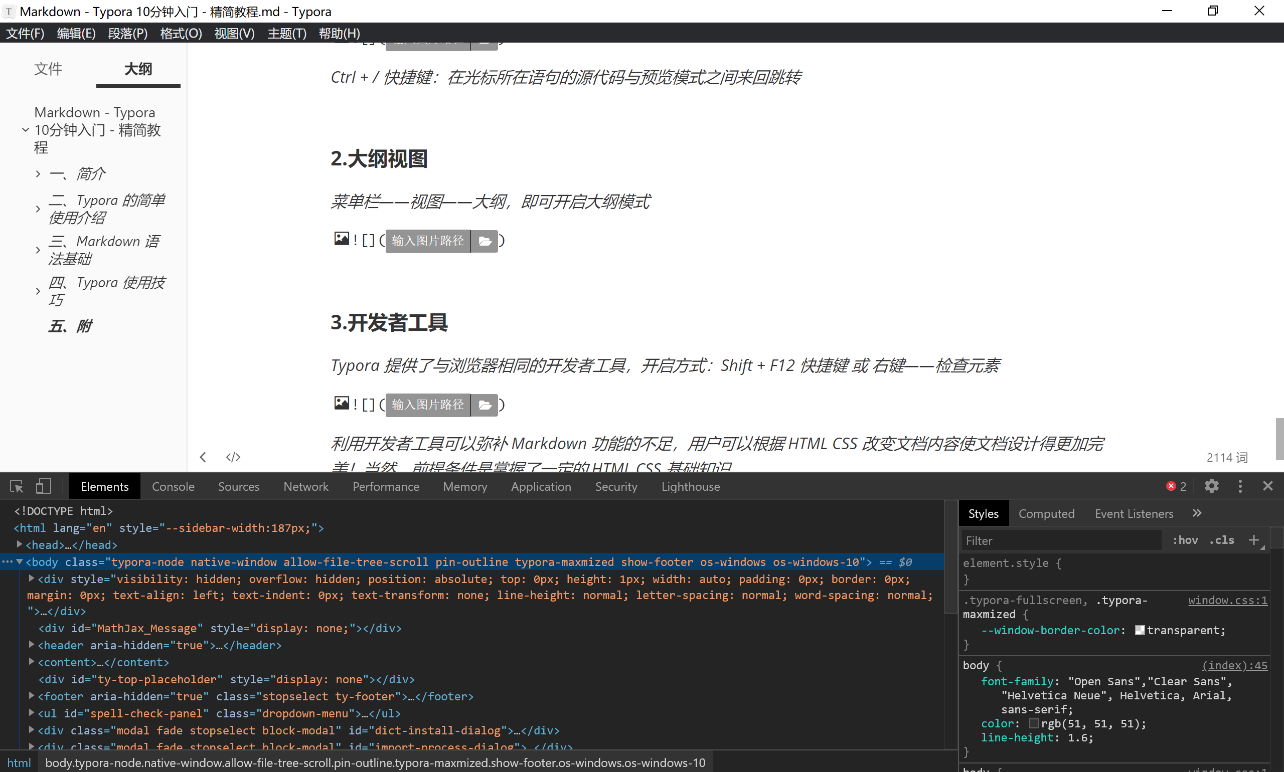 Typora 提供了与浏览器相同的开发者工具,开启方式:Shift + F12 快捷键 或 右键——检查元素