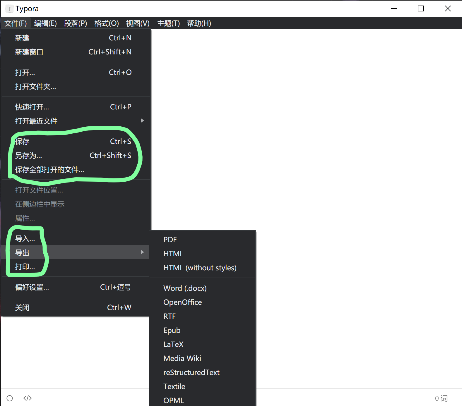 Typora 提供了许多格式的导出,方便文档的跨平台使用