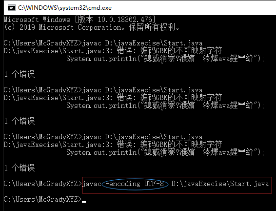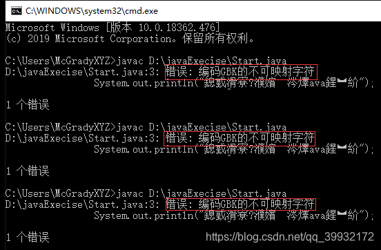 CMD运行JAVA出现“错误:编码GBK的不可映射字符”