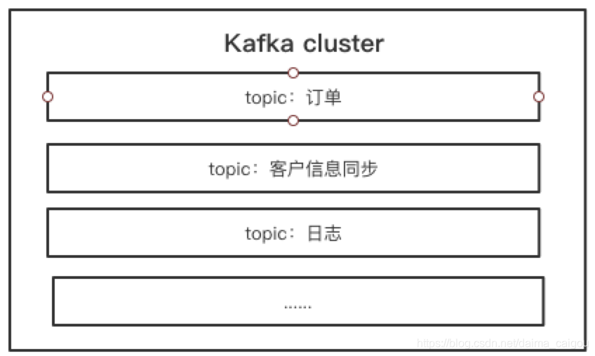 topic翻译过来是:主题,也可以理解为类型、标记...... 他的作用就是Kafka分类管理消息的依据。