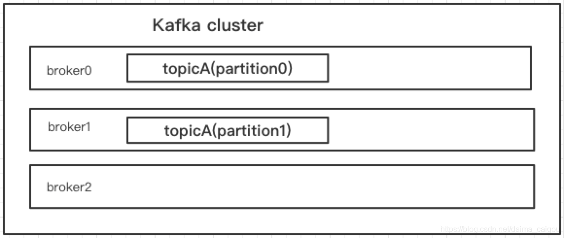 如图,我们看到,broker0和broker1这两个实例都有一部分属于topicA的数据,他们加起来就是完整的数据。