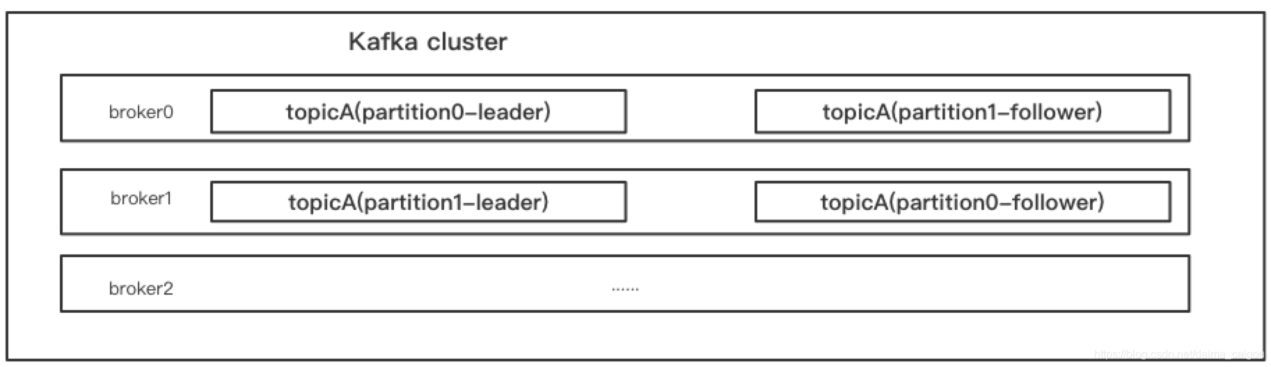 Kafka所说的这个broker就是我们说的集群中的一个实例,你理解为一个Kafka进程或者一台机器或者一个节点都行。