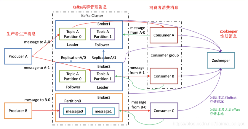 0.9版本之前,offset存储在zk