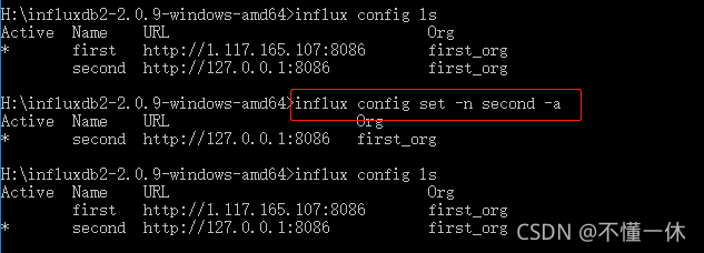 重新启动 influx 服务,重新运行 influxd.exe,Linux可以使用 systemctl restart influxd 或 service restart influxd