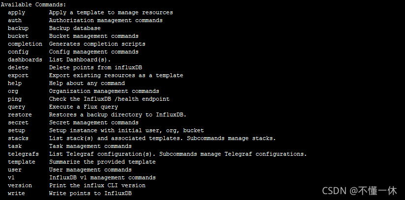 官方文档地址 https://docs.influxdata.com/influxdb/v2.0/reference/cli/influx/