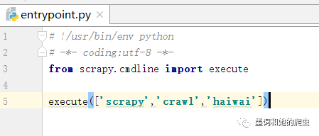 4:scrapy默认不能再IDE中调试的所以这里我们使用一个小技巧,我们再根目录下新建一个entrypoint.py,用于后面的调试