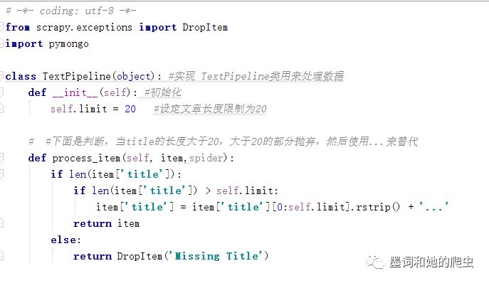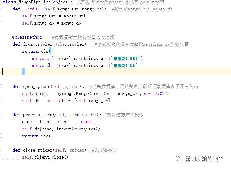 如果想要将数据存入MongoDB则需要在Item Pipeline里进行处理,Item Pipeline的作用是: