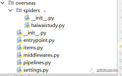 3:此时会发现在spider文件中多了一个 haiwaistudy.py,